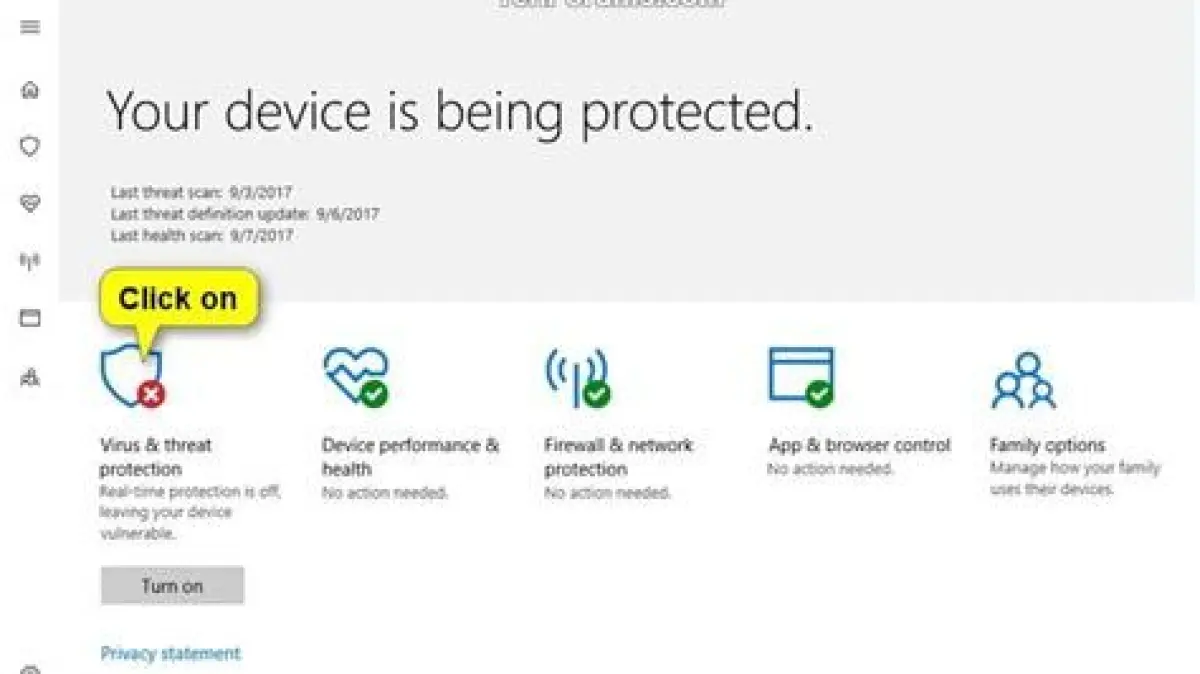 - Periksa Status Antivirus: Buka Settings (tekan tombol Windows + I), lalu pilih Update & Security. Di bagian Windows Security, klik Virus & threat protection. Di sini Anda bisa melihat status perlindungan antivirus Anda.